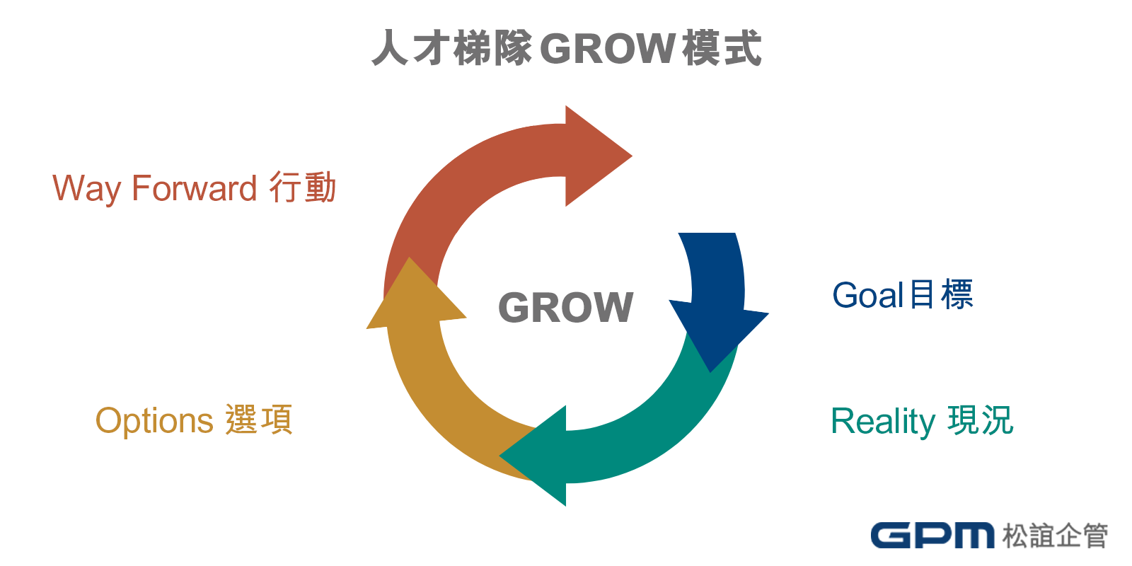 本文將用教練GROW的模式來探討成功啟動策略性人才梯隊的思考點,來幫助企業有效地識別並發展人才,GROW模式是一個強大的工具,為企業教練常用於啟發個人和團隊達成目標和解決問題的有效對話,GROW分別代表Goal目標、Reality現況、Options選項及Way Forward行動,亦可將其應用於人才梯隊專案建置的思維角度及步驟如下: